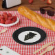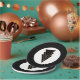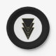 Um design geométrico chic e trendy com trio de triângulos pretos bordados em ouro e cercados por um fundo preto. Este prato é uma escolha excelente para casamentos, eventos de gravatas negras, festas de aniversário, aniversários, provandos de vinho, eventos corporativos e muito mais. Coordena-se perfeitamente com a coleção de casamentos "Deco de Arte Moderna Tuxedo".