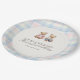 These teddy bear birthday plates feature a pink and blue plaid twins Beary First design with a classic, timeless feel. Printed and shipped by Zazzle, they’re perfect for serving cake and treats at a coordinated twin first birthday party.