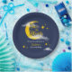 "Celestial Elegance Meets Personalized Perfection! Our space-themed birthday paper plates, adorned with a crescent yellow golden moon, brings a touch of cosmic magic to your event. Fully customizable with your name, this gender-neutral card sets the stage for an unforgettable celebration. The 'Two the Moon' message in elegant letters adds a celestial charm that's perfect for your stellar gathering!"