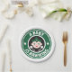 Um "bebê está a preparar" papel para café, chá ou placas de suco. Perfeito para um chá de fraldas, especialmente para o brunch. Este apresenta um esquema de cores verdes com selo e batalhas de logotipo. Excelente para um chá de fraldas ou gole neutro em relação ao gênero e ver para um menino ou menina. Ilustração desenhada à mão por McBooboos.