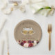Um Bebê é design de SUSPENSÃO para uma festa de Chá de fraldas rústica, com duas pinturas e uma magnífica tipografia "A Baby is BREwing", Burgundy blush watercolor, em um fundo de burlap. Use a ferramenta Personalizar para adicionar suas informações. Veja também a Coleção de Chás de fraldas.