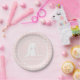 Prato De Papel Um coelhinho é um aniversário de Gingham rosa