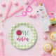 Uma em uma Melon Watermelon, primeira placa de festa de aniversário com xadrez verde de melão.