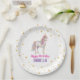 Celebrate a magical birthday with this adorable unicorn paper plate! Featuring a beautifully illustrated watercolor unicorn with a flowing pastel rainbow mane and sparkling gold horn, this design creates the perfect whimsical look for a girls unicorn birthday party.