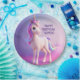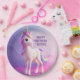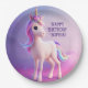 Prato De Papel Unicórnio Branco Bonito Com Mano Rosa E Azul