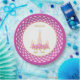 Unicórnio, flores, confete dourado sobre a coroa branca e violeta, chakra mandala em fundo Paper Plate. O texto da princesa pode ser personalizado. A coroa chakra é para a consciência mais alto ou empatia com todos os seres. Bom para crianças e adultos!