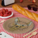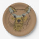 Urso marrom encara placas de papel a cores de fundo personalizadas.
