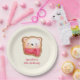 Prato De Papel Urso Bonito Rosto num Aniversário Vermelho