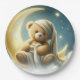 Prato De Papel Urso de Pelúcia na Lua Brilho Estrelas Chás de Beb