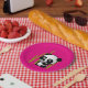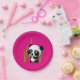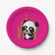 Prato De Papel Urso panda branco e preto num pomar de bambu.