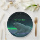 Um momento pacífico na longa noite árctica. Um Urso Polar repousa na borda de uma área aberta no gelo da matilha. As luzes do Norte brilham à distância; as estrelas brilhantes brilham sobre a cabeça. Adicione seu próprio texto. Os ursos polares estão ameaçados. Quanto tempo mais cenas como esta poderão ocorrer? Por favor, ajude a salvar os Ursos Polares da extinção.