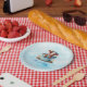 Prato De Papel Vaca branca de bebê em Chá de fraldas azul Balde É