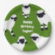 Estas placas de papel de festa de aniversário personalizadas são perfeitas para festas de temas de fazenda ou para dar uma festa para quem ama ovelhas. Estes materiais de festa apresentam ilustrações das ovelhas Valais Blacknose, de cor branca e preta, sobre um fundo verde brilhante. Eles estão prontos para serem personalizados com sua própria mensagem em letras brancas em negrito.