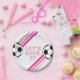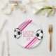 Vamos Chute! Placas de Aniversário do Futebol com listras cor-de-rosa e bola de futebol.