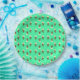 Vela brilhante com Xmas holly em design de fundo de faixas verdes.