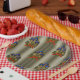 Um conjunto de placas de papel de festas de Natal com um padrão colorido de mortes e velas, amarradas com fita vermelha, para adicionar um toque festivo ao seu entretenimento de festas e jantar de Natal nesta temporada de festas.