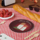 Prato De Papel Velas de Natal Branco Em Vermelho Com Texto Person