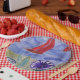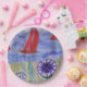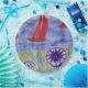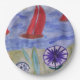 Em um dia ensolarado de verão, a colina que olha para o mar está coberta de flores lindas e coloridas. Há uma forte brisa quente e muitos barcos com velas vermelhas brilhantes navegam nas águas azuis da baía. Esta é uma aquarela vibrante e alegre que trará um salto de cor brilhante para sua casa.