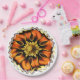 Um design de arte de uma velha flor de vidro colorido da Inglaterra.