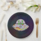 Nesta ilustração da ficção científica do divertimento por Richard H. Adaptar, os aliens verdes groovy montam em uns pires de vôo decorados com flores, corações, uma estrela, e um arco-íris.