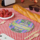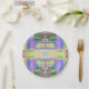 Prato De Papel Verde Amarelo Azul Roxo Geométrico