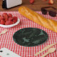 Prato De Papel Verde e Preto Chic Folhas Tropicais Casamento