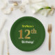 Prato De Papel Verde, Faux Dourado 12 Aniversário + Nome Personal