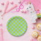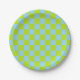 Arte abstrato digital de quadrados verdes limões e azuis pastel em uma formação marcada.