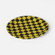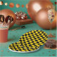 Arte abstrato digital de ouro e quadrados negros em formação controlada.