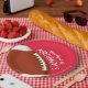 As placas de papel personalizáveis em 2 SIZES - 9" e 7" apresentam uma bola de futebol em vermelho e as palavras "É o Dia do Jogo!" juntamente com o seu nome. Mais cores e itens correspondentes em nossa loja.