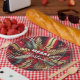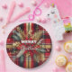 Prato De Papel Vermelho Elegante e Xadrez festiva Dourada