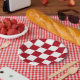 Prato De Papel Vermelho Escuro/Branco Verificado