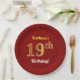Prato De Papel Vermelho, Faux Dourado 19º Aniversário + Nome Pers