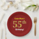 Prato De Papel Vermelho, Faux Dourado 55º aniversário + Nome Pers