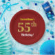 Este simples, personalizado, design de placa de papel com tema de aniversário apresenta uma mensagem personalizável, como "55º Aniversário do CustomName!", onde o nome pode ser alterado, e com o "55º" com uma aparência falsa/de ouro. Ele também apresenta um fundo de cor vermelha. Chapas de papel como estas poderiam talvez ser usadas numa festa que está a ser realizada para celebrar o cinquenta e cinco anos de alguém. [~Z0000144]