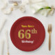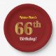 Prato De Papel Vermelho, Faux Dourado 66º Aniversário + Nome Pers