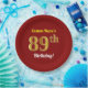 Este simples, personalizado, design de placa de papel com tema de aniversário apresenta uma mensagem personalizável, como "89º Aniversário do Nome Personalizado!", onde o nome pode ser alterado, e com o "89º" com uma aparência falsa/imitada em forma de ouro. Ele também apresenta um fundo de cor vermelha. Chapas de papel como estas poderiam talvez ser usadas numa festa que está a ser realizada para celebrar o oitenta e nono aniversário de alguém. [~Z0000144]