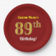Prato De Papel Vermelho, Faux Dourado 89º Aniversário + Nome Pers