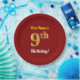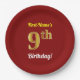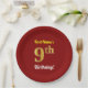 Prato De Papel Vermelho, Faux Dourado 9º Aniversário + Nome Perso