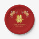 Prato De Papel Vermelho laranja floral Chinês dupla felicidade