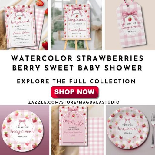Watercolor Strawberries Berry Sweet Baby Shower Criado por Magdaline Annie Martin Oming