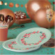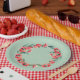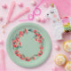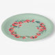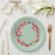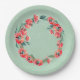 Chapas de papel com tema botânico. Flores vermelhas e folhas verdes em forma circular colocadas sobre um fundo retroverde. A imagem foi criada com aquarelas e digitalizada.