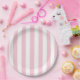 Prato De Papel Vertical Stripes Bebê Rosa E White Stripes