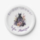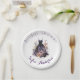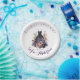 Vestido preto aquarela, ideal para um chá de noiva roxo. São pratos de papel, perfeitos para adicionar um toque especial. Design aquarela com vestido preto, lindamente adequado para um evento de chá de noiva com tema roxo. Esses adesivos redondos clássicos são uma escolha maravilhosa para decorações e lembranças.