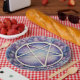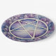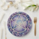 Estas placas de papel festas apresentam um impressão de aquarela branca de um pentáculo.