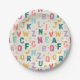Add a splash of color to your next milestone event with these vibrant watercolor alphabet paper plates. This design features a bold palette of rich jewel-toned letters like deep teal, magenta, and mustard yellow, accented by shimmering gold glitter dots and delicate botanical sprigs. Set against a textured cream background, these plates offer a sophisticated yet playful look that is perfect for gender-neutral birthday parties, library-themed events, or creative school celebrations.