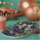 Este design do coquetel de Halloween roxo e verde apresenta a frase 'Bruxas de Cheers' e tem dois coquetéis assustadores com globos oculares, crânios, morcegos e tarântulas. A borda desta design é o cheio de espirais mágicos e estrelas num gradiente de verdes e roxas. Veja toda a coleção correspondente. Toda trabalho de arte é desenhada à mão e copyright de Kaitlyn Thomas.