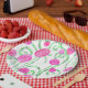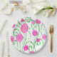 Prato De Papel Vinhas Verdes e Flores Rosa