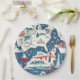 Um padrão maravilhosamente trabalhado, inspirado na vintage, com marcas e símbolos americanos icônicos. Com a Estátua da Liberdade, o mapa dos EUA, as cadeias montanhosas, e a ponte do Brooklyn todas colocadas sobre um fundo azul rústico, esta placa de papel celebra o espírito dos Estados Unidos através do eterno e imagens reconhecíveis. Perfeito para acrescentar um talento nostálgico e patriótico durante os feriados nacionais ou durante todo o ano.