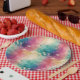 Vintage dandelion abstract pattern paper plate featuring delicate seed heads layered over rich teal, pink, and muted purple watercolor textures. Dreamy and artistic with an ethereal mixed-media aesthetic, this seamless design is ideal for botanical art lovers, boho style fans, nature enthusiasts, and vintage-inspired decor admirers.